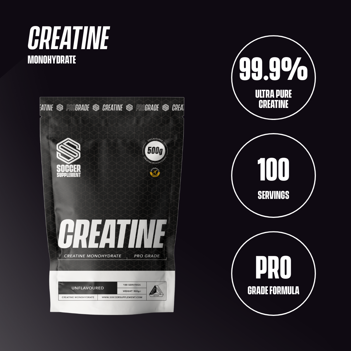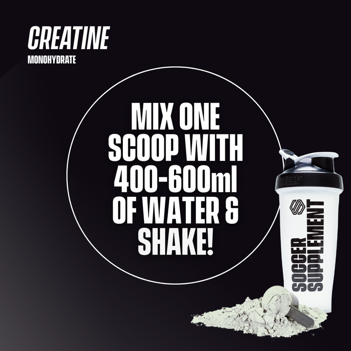 Mix 3g of Creatine with water in your Soccer Supplement Protein Shaker and consume on a daily basis. Alternatively, our unflavoured Creatine can be added to your Whey90, Recover90 or Clear Whey shake.