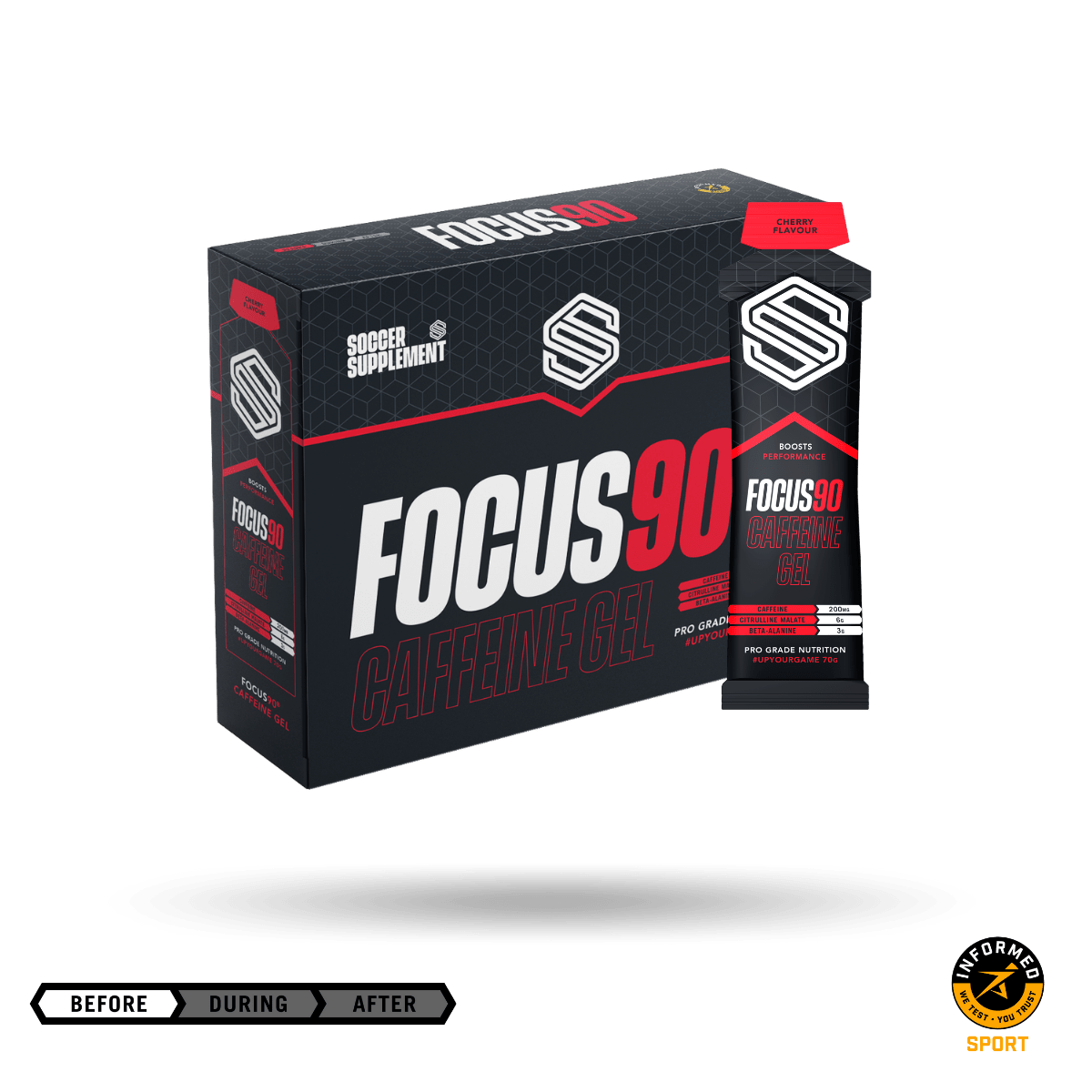 Boost your performance and gain an edge over the competition with our Focus90 energy gels. Developed with world-class nutritionists, research indicates that this unique combination of ingredients can enhance passing accuracy, jump performance, decision making, and endurance.
